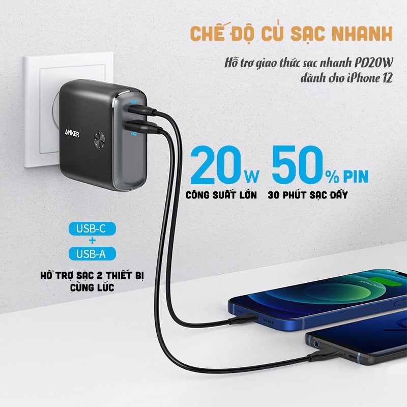 ✅ Chế độ củ sạc Anker Fusion hỗ trợ sạc nhanh PD-20W cho iPhone 12