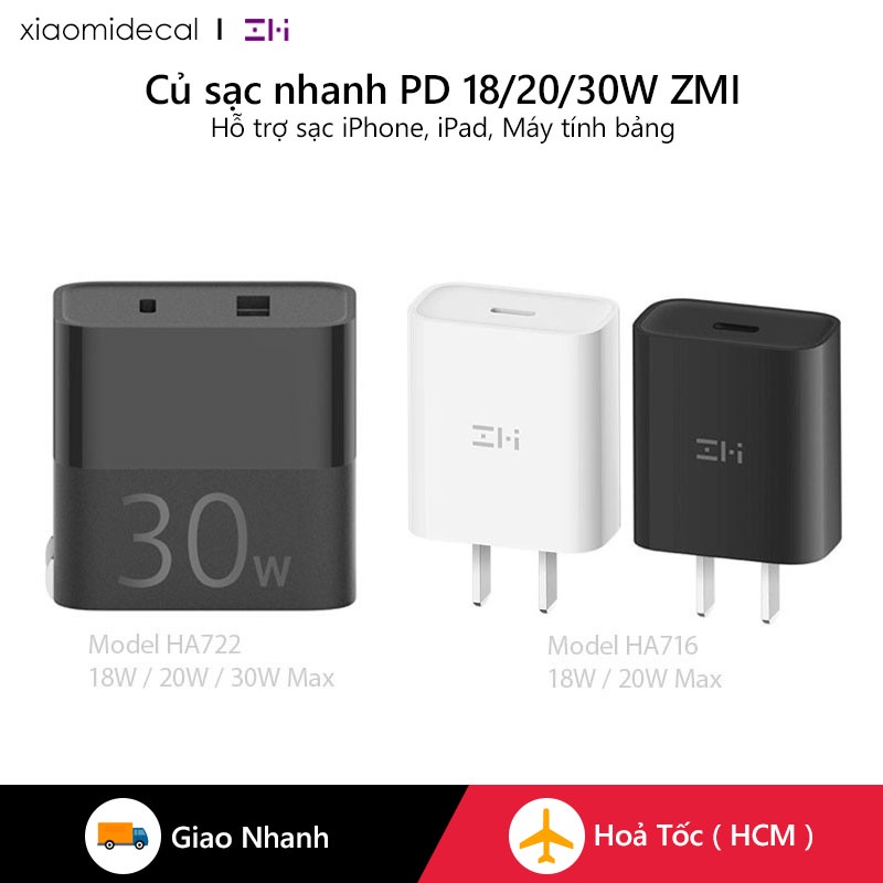 Giới thiệu Củ sạc nhanh PD 30W / 20W / 18W ZMI, Hỗ trợ sạc iPhone 12 / 11 / 8 / iPad / Macbook / Máy tính xách tay, điện thoại