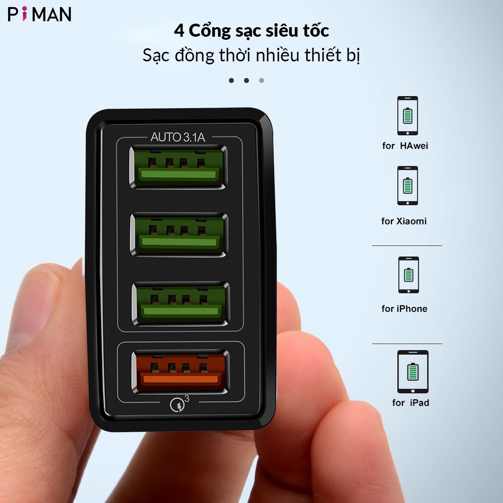 Củ Sạc Nhanh Piman 20W Samsung Oppo Quick Charge 3.0 Kéo Dài Tuổi Thọ Cho Pin P211
