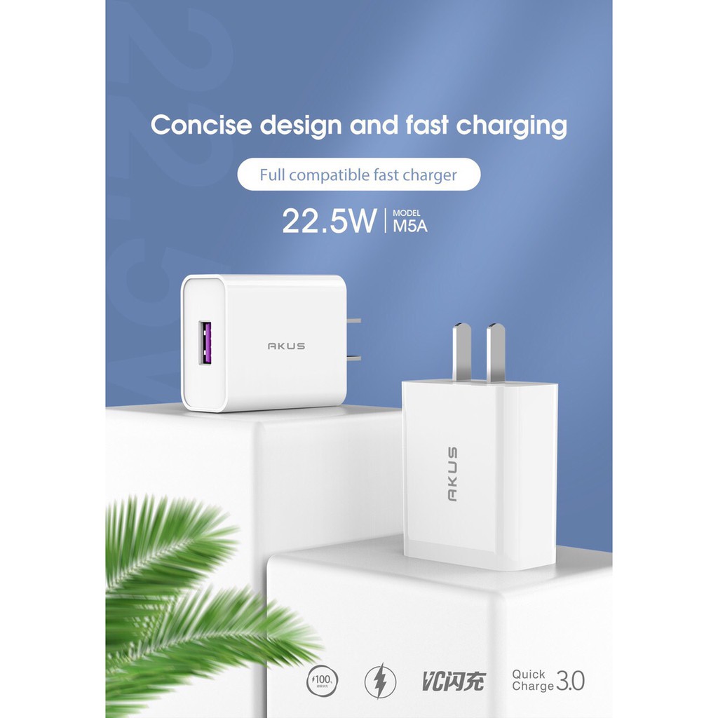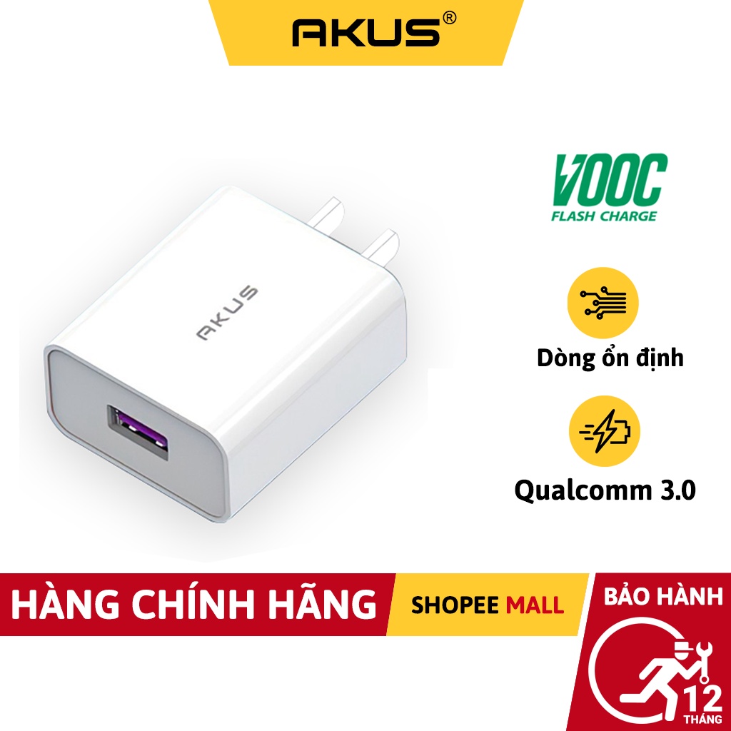 Điện Thoại & Phụ Kiện > Phụ kiện > Cáp, sạc & bộ chuyển đổi > Bộ sạc || CỦ SẠC NHANH VOOC QC30 AKUS M5A - Hàng chính hãng - Bảo hành 12 tháng - AkusCòn hàng
