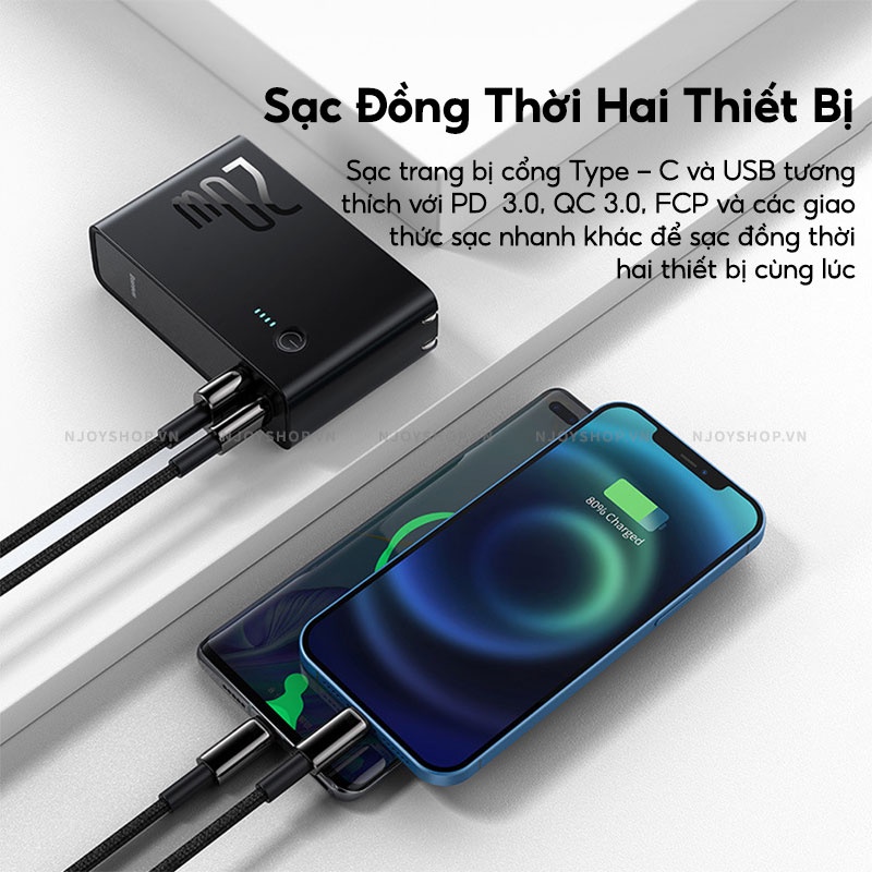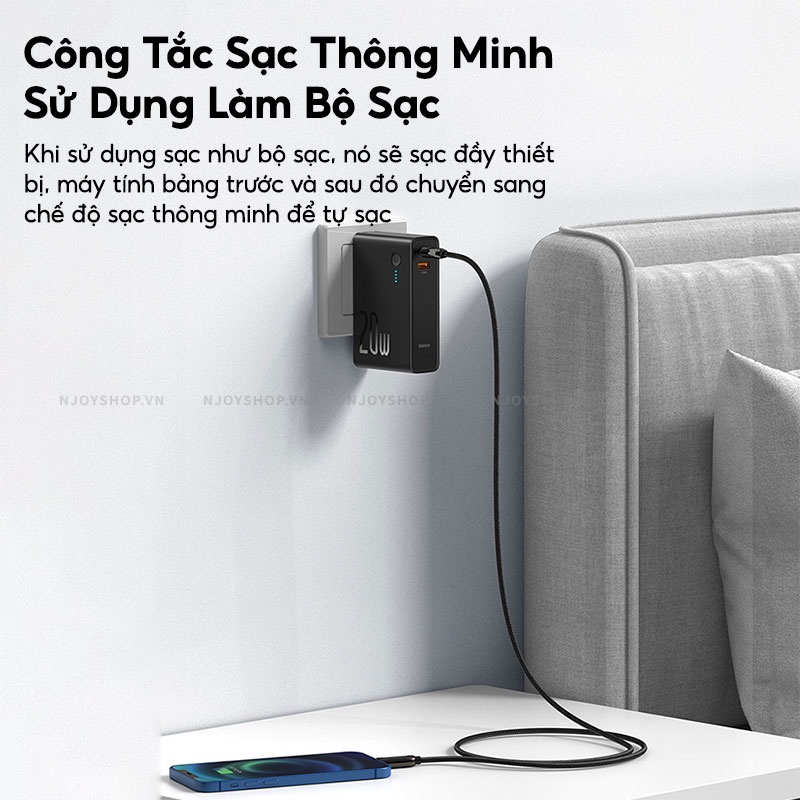 Giới thiệu Củ Sạc Thông Minh Tích Hợp Pin Dự Phòng 10000mAh BASEUS 2 in 1 Powerbank 2 Cổng Sạc Nhanh PD 20W + QC 3.0 Led Báo Pin