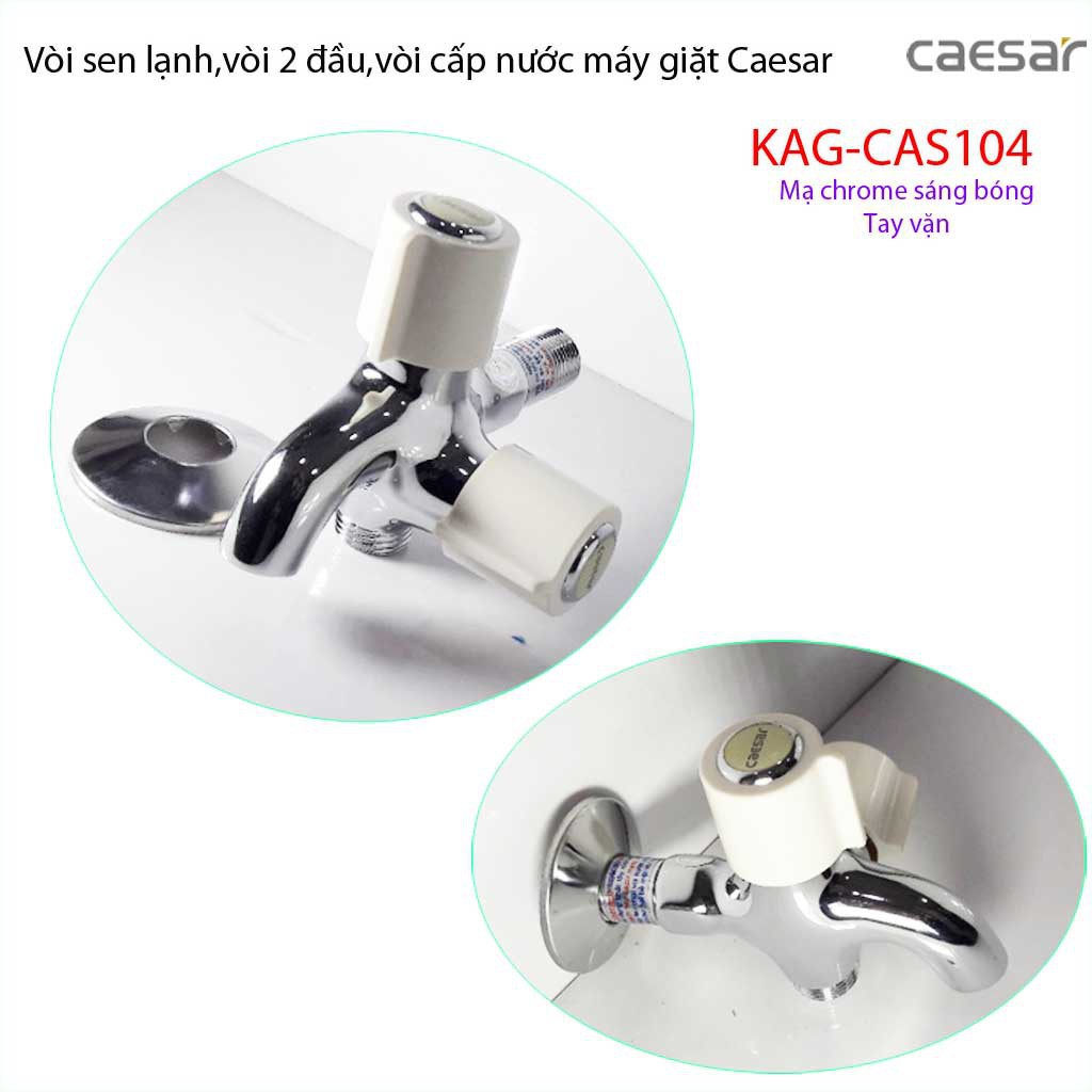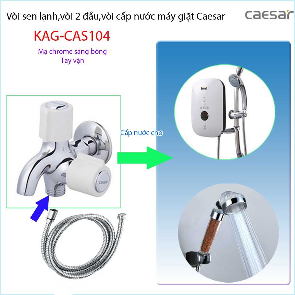 Củ sen lạnh Caesar, vòi sen tắm lạnh KAG-CAS104 có 2 ngã chia nước: 1 lên vòi hoa sen hoặc máy nước nóng trực tiếp, 1 xả sàn hoặc xả xô
