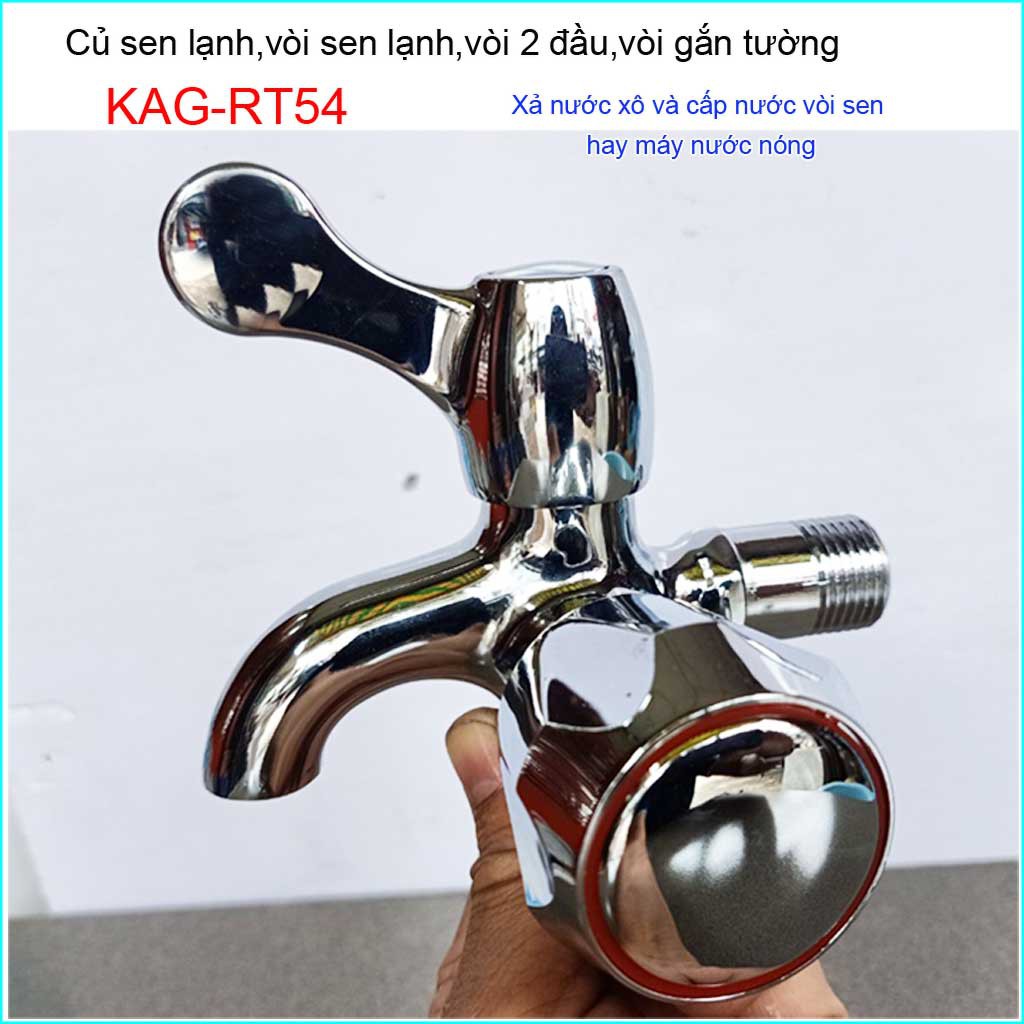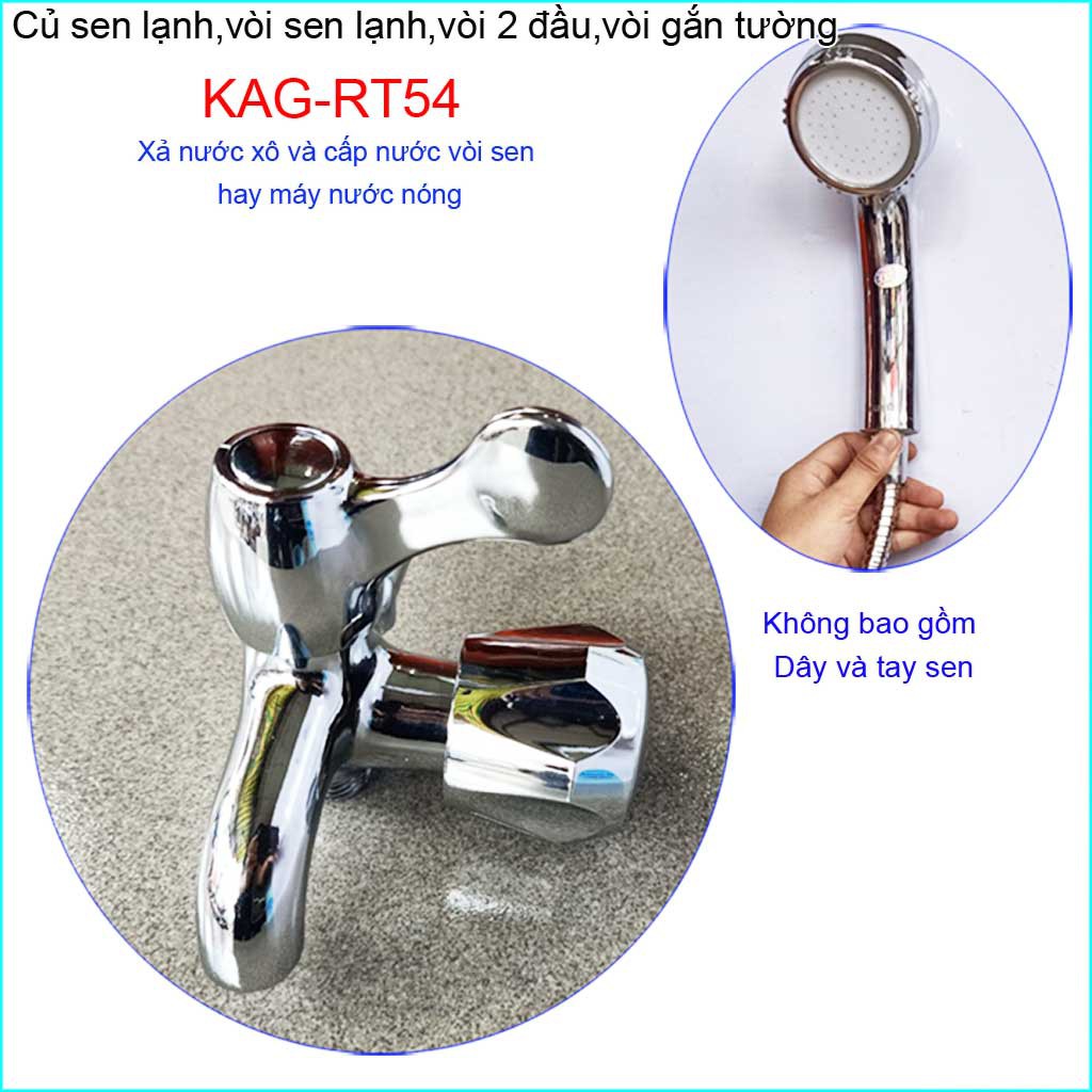 Củ sen lạnh Kace, vòi củ sen lạnh, vòi sen tắm lạnh KAG-RT54 có 2 ngã chia nước: 1 lên vòi hoa sen hoặc máy nước nóng trực tiếp, 1 xả sàn hoặc xả xô
