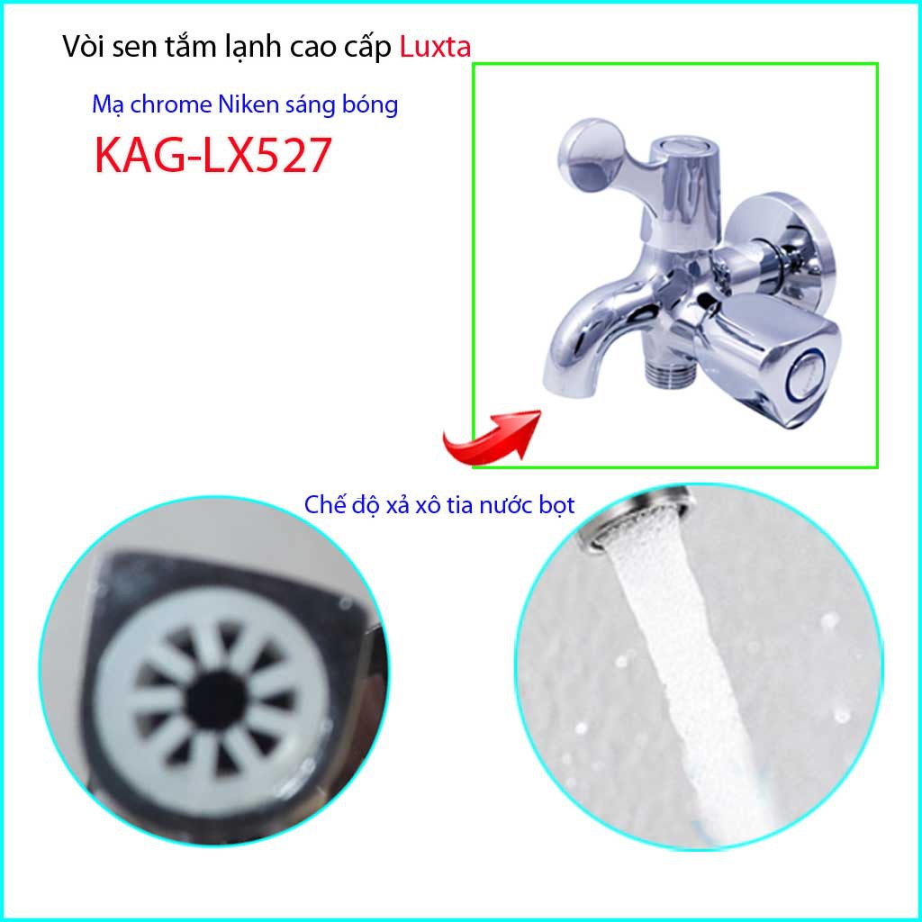 Củ sen lạnh, vòi sen tắm lạnh KAG-LX527 có 2 ngã chia nước: 1 lên vòi hoa sen hoặc máy nước nóng trực tiếp, 1 xả sàn hoặc xả xô