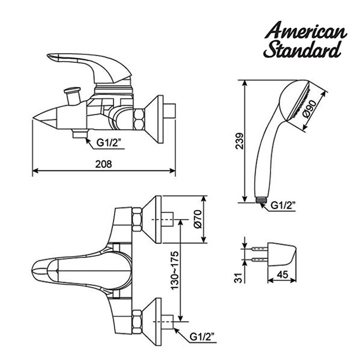 Nhà cửa & Đời sống > Đồ dùng phòng tắm > Vòi sen & vòi xịt vệ sinh || Củ sen nóng lạnh American Standard Saga WF-1511 kèm sen tắm và dây senCòn hàng