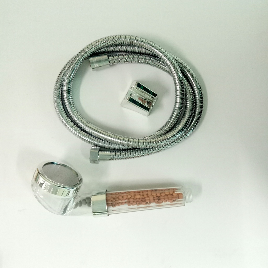 – Bộ sản phẩm gồm : 1 vòi hoa sen + 1 dây cấp nước Inox304 dài 1.5m chống xoắn + 1 giá đỡ vòi hoa sen