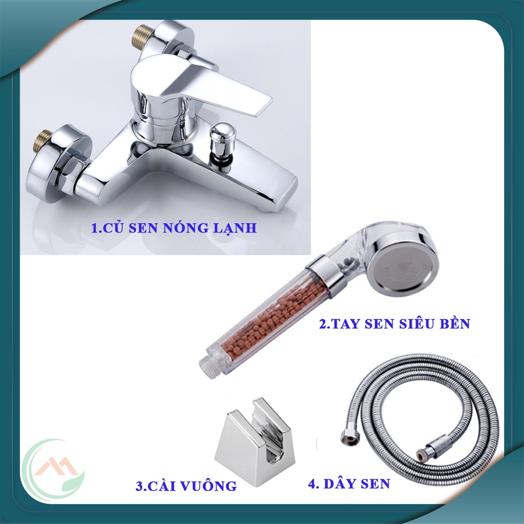 Giới thiệu Bộ củ sen nóng lạnh hợp kim mạ Crom sáng bóng + Tay sen nhựa trong siêu bền có hạt lọc đủ bộ tay sen + dây sen + cài