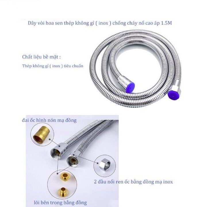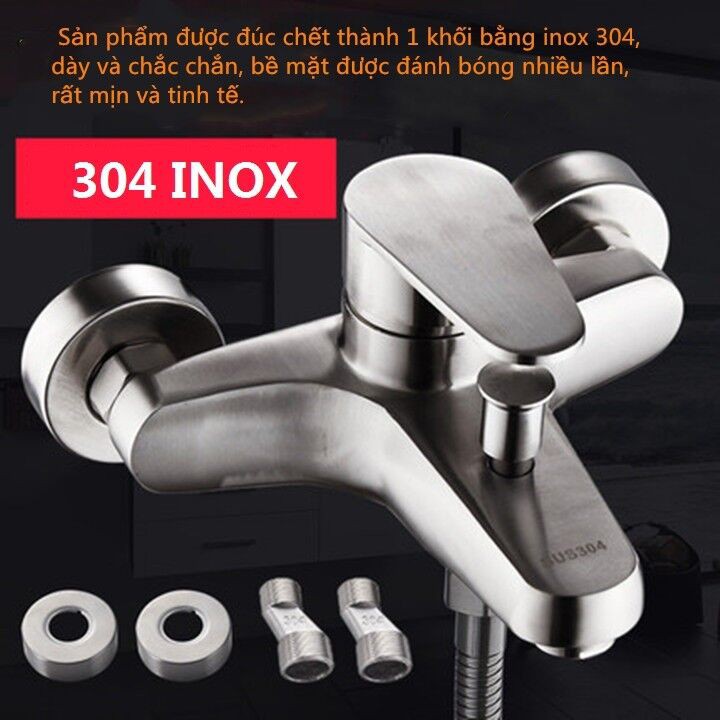 Bộ củ sen tắm nóng lạnh bồn tắm inox 304 , gồm ( củ sen tắm, vòi sen inox, giá đỡ vòi sen inox, dây sen inox)Chất liệu : inox 304
