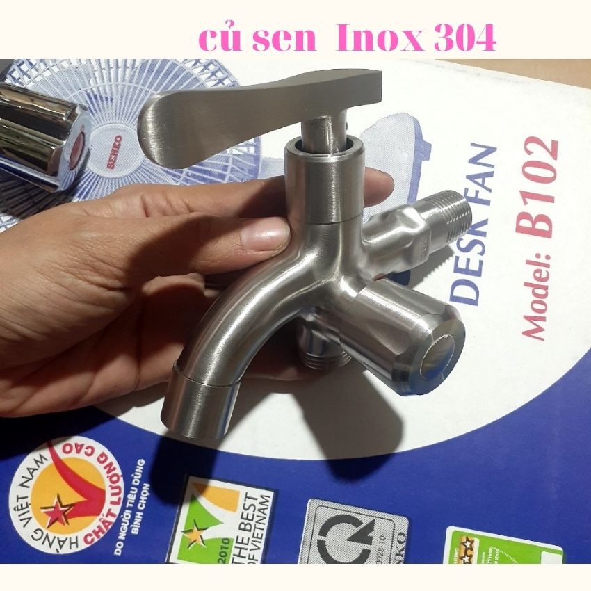 Củ sen tắm lạnh inox 304 đúc nguyên khối không gỉ thiết kế 2 đường xả.TẶNG KEO NON