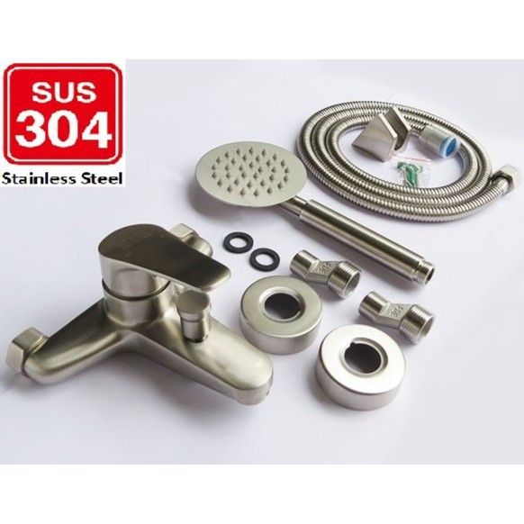Bộ củ sen tắm nóng lạnh bồn tắm inox 304,vòi sen trong nhà tắm,tay sen và dây sen inox đầy đủ