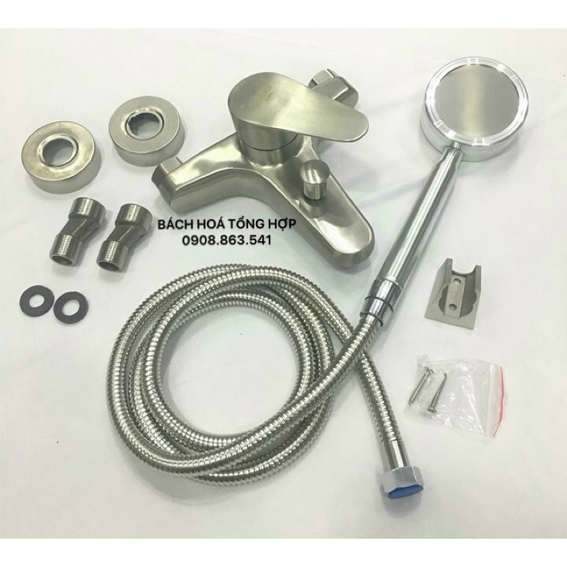 - Phân loại củ+ts inox+dây cài: gồm củ sen tắm inox, dây sen 1,4m, cài sen đúc 2 chế độ lắp, tay sen tắm tròn và cặp chân đế bắt tường