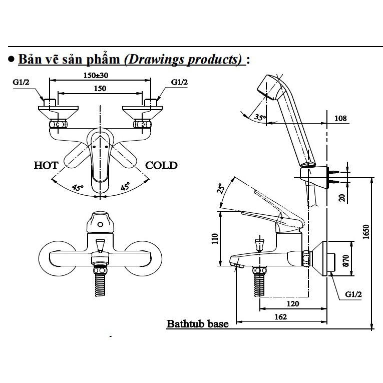 - Chất liệu: Đồng mạ Crom