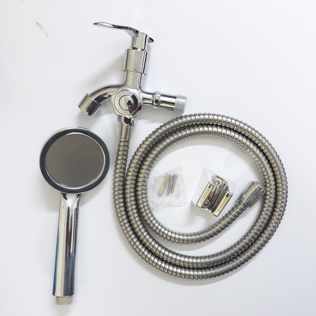 Nhà cửa & Đời sống > Đồ dùng phòng tắm > Vòi sen & vòi xịt vệ sinh || Bộ củ sen và tay sen tăng áp bằng nhựa ABS tròn mỏng 1 đường nước lạnh mạ crome áp lực cao - Đủ bộ củ sen+tay+dây+càiCòn hàng