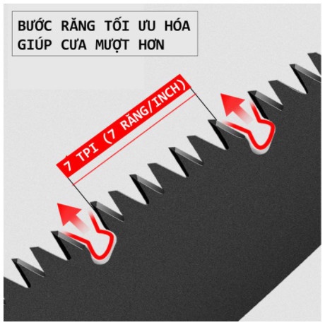 + Bước răng 7 TPI với khoảng ngắt tối ưu cho cưa gỗ giúp thoát vụn cưa nhanh hơn, cưa ngọt hơn!