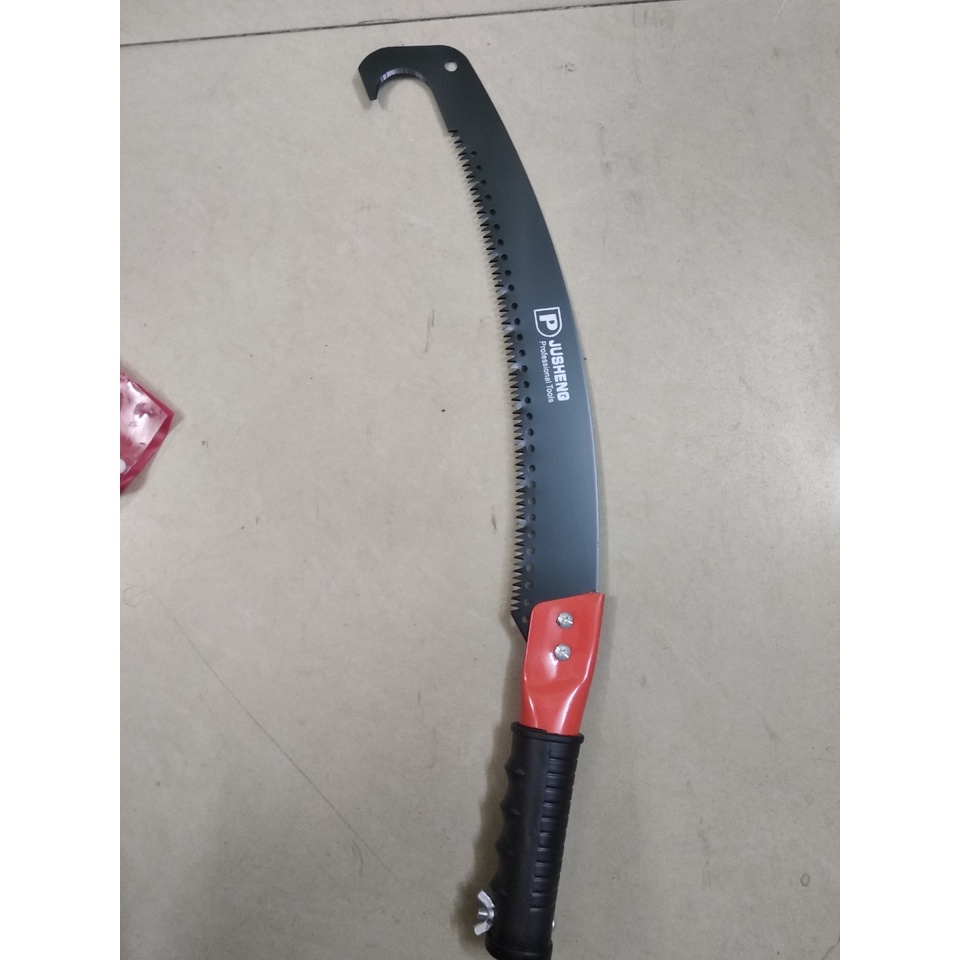 Cưa móc giật cành 1 đầu là một trong những dụng cụ cần thiết cho các nhân viên chăm sóc cây cảnh, nhà vườn và gia đình..Răng cưa lớn , lưỡi cưa có độ cong giúp việc cưa cành trên cao dễ dàng. Đầu cưa có móc sắc giật những cành nhỏ trên cao, Đầu dưới dùng để trẩy cành từ dưới.Tay cầm bọc nhựa êm , đẹp, cán tay có thể gắn thêm cán sắc, nhôm hay tầm vông để cưa, cắt tỉa cành trên cao.Lưỡi cưa cong, cưa lớn, dọc lưỡi có các lỗ nhằm hạn chế khép mạch khi thao tácQuy cách: dài tổng thể 59cm, chiều dài lưỡi 45cmGiá THG