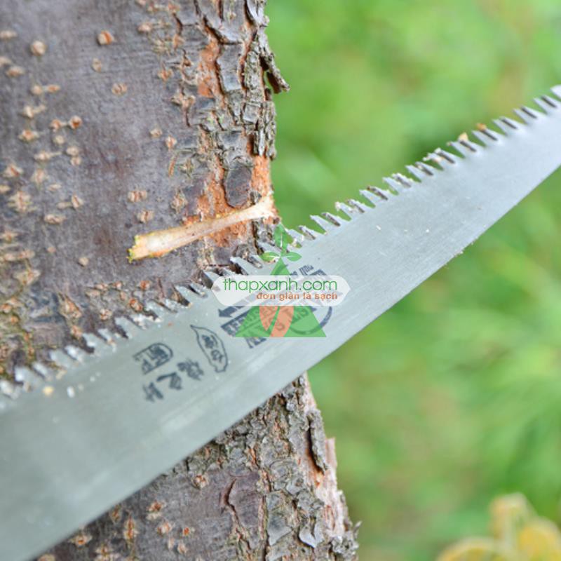 - Cách sử dụng cưa cắt tỉa cành cây rất đơn giản: Mở gấp ra. Cầm giống như bạn cầm dao, đưa cưa vào các vị trí cần cắt tỉa rồi thao tác cò cưa kéo xẻ.