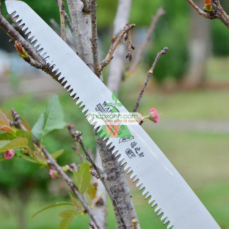 - Cưa gấp được thiết kế dạng gấp, làm bằng thép không rỉ, lưỡi cưa sắc nhọn, cứng chắc, cực khỏe với lực cắt mạnh. lưỡi cưa vừa đủ nhỏ nên dễ dàng đưa vào các ngách, cành, tán cây, bụi hoa để cắt tỉa cành nhỏ.