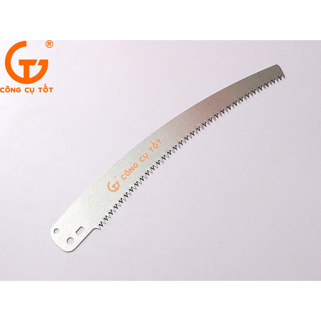 -Cưa cành to: với các cành to, không thể dùng kéo để cắt, lắp thêm lưỡi cưa vào dụng cụ, ta dễ dàng đứng từ xa để cưa. Lưỡi cưa được chế tạo dạng vòng cung như lưỡi liềm với răng cưa so le mài lệch bên và kích thước răng nhỏ hơn một chút so với cưa tay để giúp cưa từ xa dễ dàng với lực nhỏ (khác với cưa ngắn cầm tay, cưa xa dễ bị đung đưa hơn).