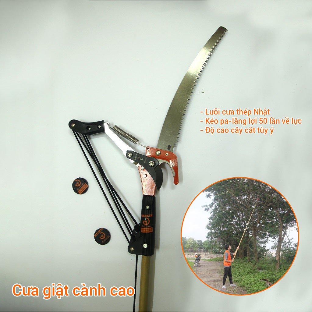 1. Công dụng-Ngày nay, để không tốn sức leo trèo khi cần cắt tỉa các cành to, người ta sử dụng cưa giật cành trên cao, với các tác dụng chính như: