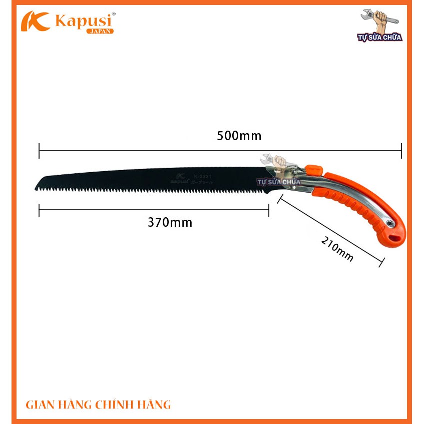Cưa gỗ cầm tay, cưa cành lưỡi đen thép Nhật KAPUSI 350mm có bao đựng - Cưa cành cầm tay cao cấp Nhật Bản Kapusi K-2331
