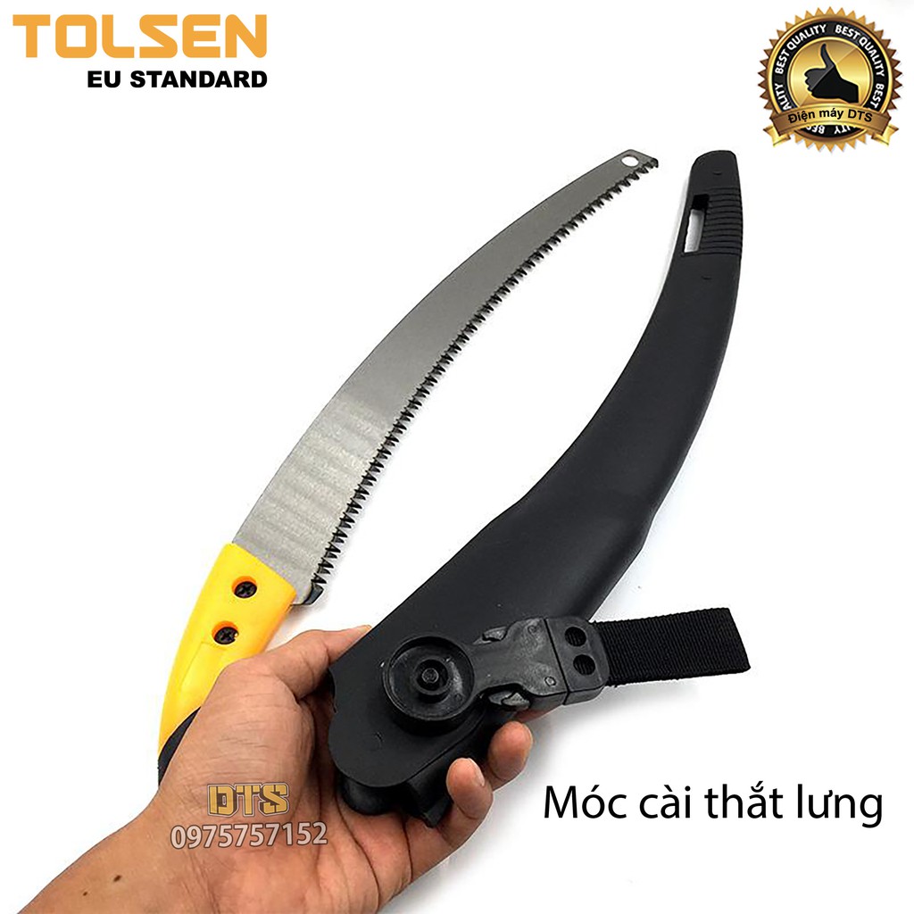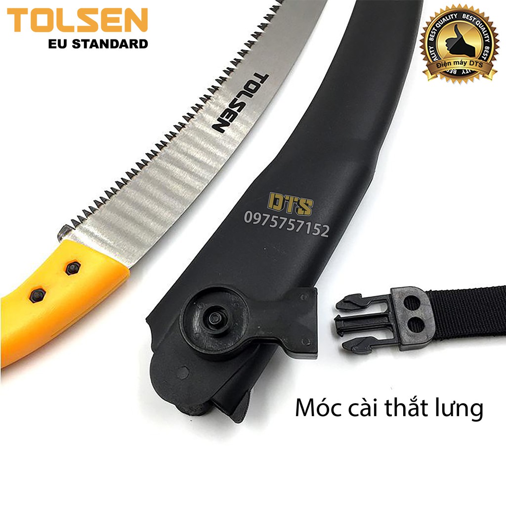 Cưa gỗ, cưa cành cầm tay lưỡi cong TOLSEN 350mm, thép SK5 xử lý nhiệt, móc treo thắt lưng tiện dụng- Tiêu chuẩn Châu Âu