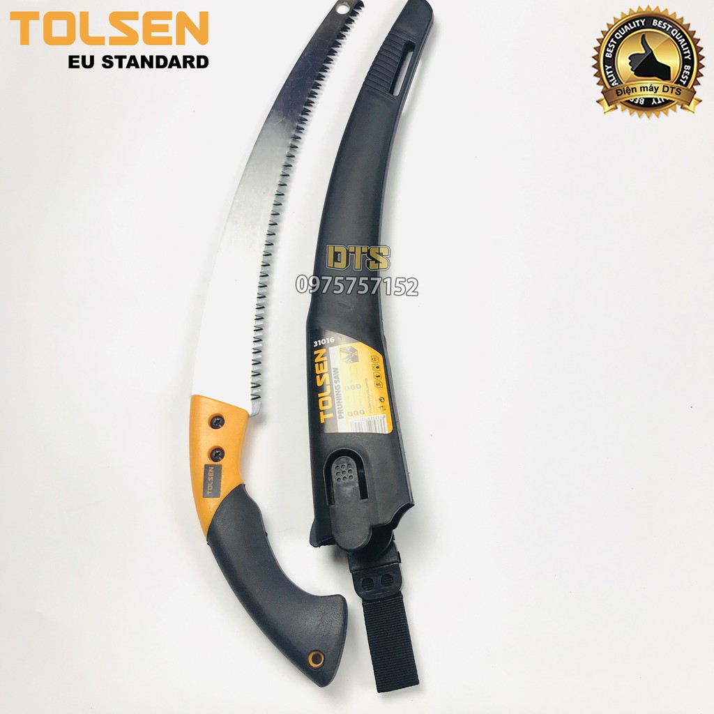 Nhà cửa & Đời sống > Dụng cụ & Thiết bị tiện ích > Dụng cụ > Cưa, máy cắt & máy mài || Cưa gỗ, cưa cành cầm tay lưỡi cong TOLSEN 350mm, thép SK5 xử lý nhiệt, móc treo thắt lưng tiện dụng- Tiêu chuẩn Châu ÂuCòn hàng