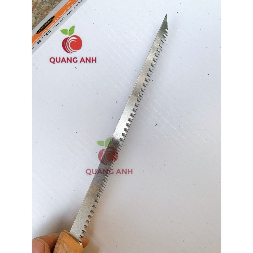Lưỡi cưa sắc bén được làm từ thép cacbon, giúp vết cắt dứt khoát, tránh tổn thương cây.