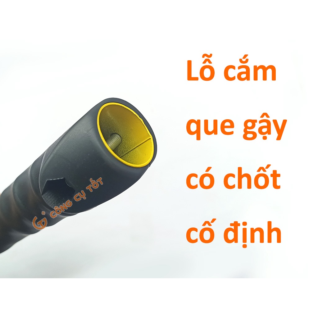 Cán đuôi có lỗ và chốt cố định để gắn các loại thanh sào dùng để sử dụng trên cao