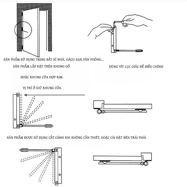 ứng dụng rộng rãi: Cửa gần hơn có thể được sử dụng trên tất cả các cửa trước bằng nhôm, gỗ hoặc các ứng dụng cửa thương mại kim loại rỗng.