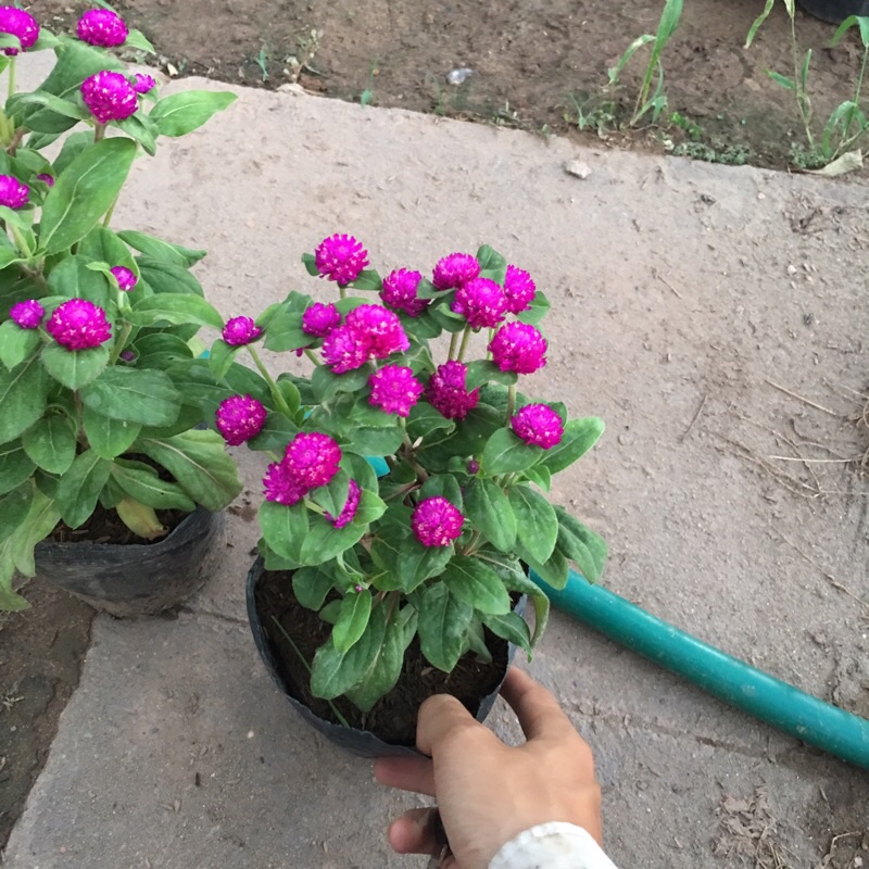 Nhà cửa & Đời sống > Làm vườn > Cây cảnh || Cây cúc bách nhật đã có hoa và nụ (Hàng bầu đen như hình)Còn hàng