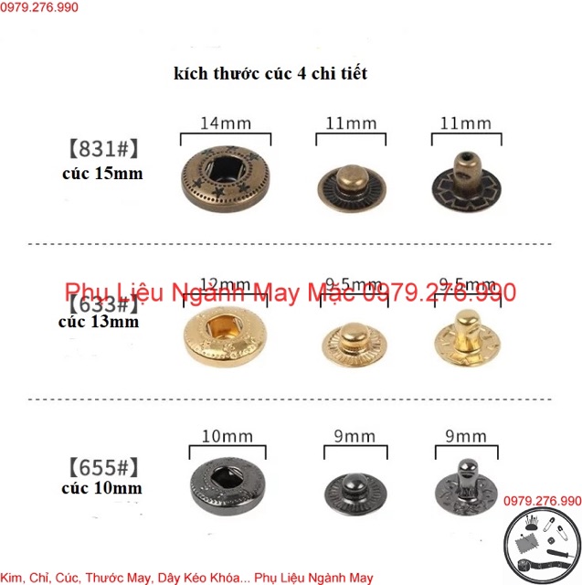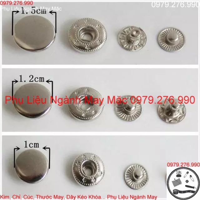 Sở thích & Sưu tầm > Dụng Cụ May Vá || Cúc bấm 4 chi tiết 15mm ko gỉ sét- 40 bộ/1 góiCòn hàng