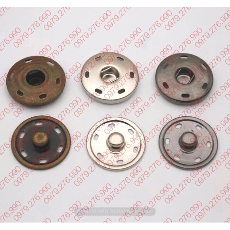 Cúc bấm khâu 2 chi tiết thường được sử dụng để làm khuy bấm áo dạ, áo măng tô.....Hiện shop có 3 màu: inox, đồng, hun