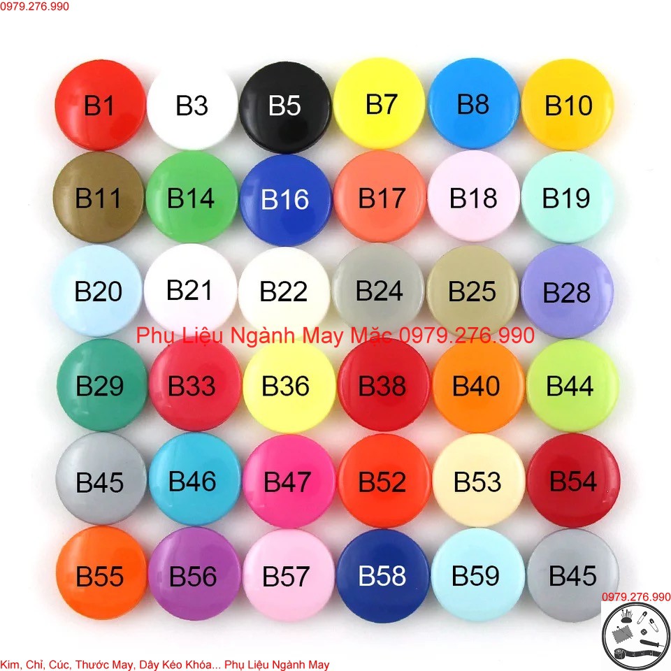 Sở thích & Sưu tầm > Dụng Cụ May Vá || Cúc bấm nhựa T5 hãng KAM- nút bấm nhựa T5Còn hàng