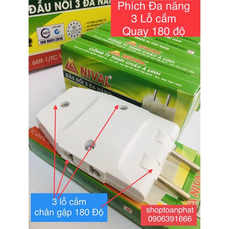 Cục chia 3, phích cắm nối đa năng, đầu nối 3 nival