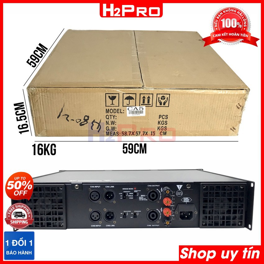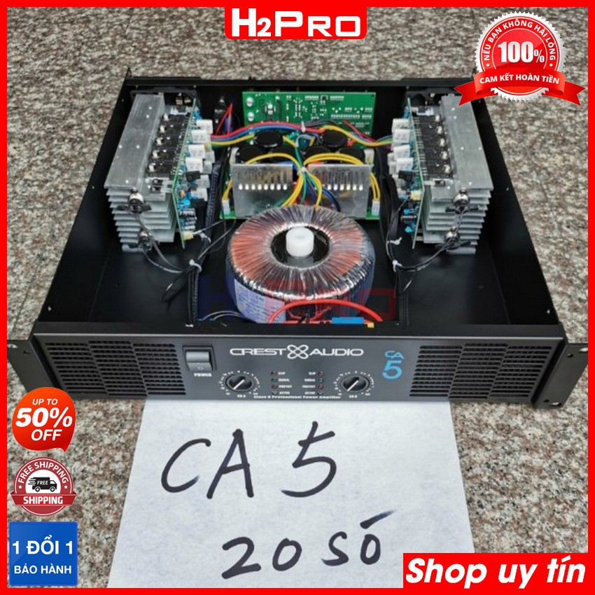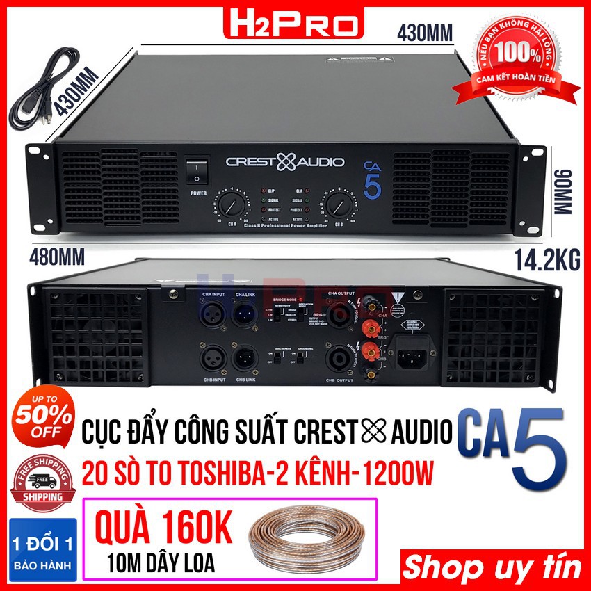 Cục đẩy công suất, cục đẩy 2 kênh CREST AUDIO CA5 1200w-20 sò to-nguồn xuyến, âm thanh hay (tặng 10m dây loa)-H2pro Tech