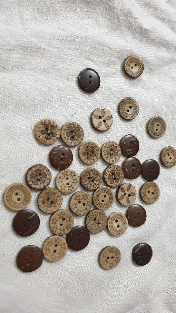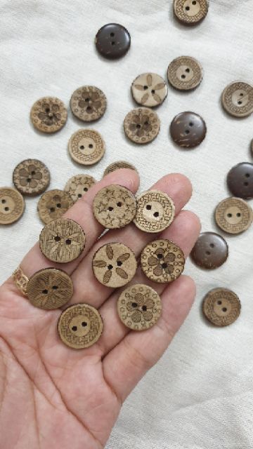 Sở thích & Sưu tầm > Dụng Cụ May Vá || Cúc gỗ dừa khắc họa tiết size 1,8cmCòn hàng