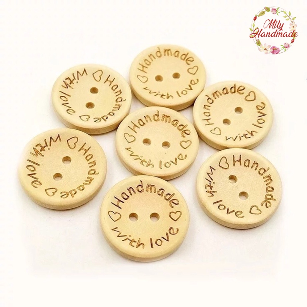 Sở thích & Sưu tầm > Dụng Cụ May Vá || Cúc Gỗ Handmade with love (gói 10 cái)Còn hàng
