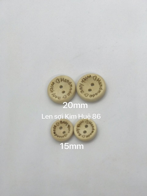 Cúc gỗ handmade with love dùng để trang trí các sản phẩm handmade như áo, khăn, mũ, thú bông...Size 15mm 10k/10c
