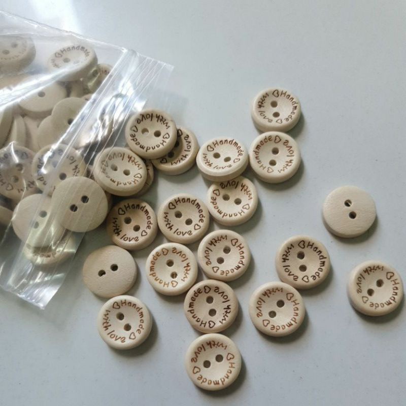 Cúc gỗ khắc chữ Handmade with loveỨng dụng may mặc, handmade
