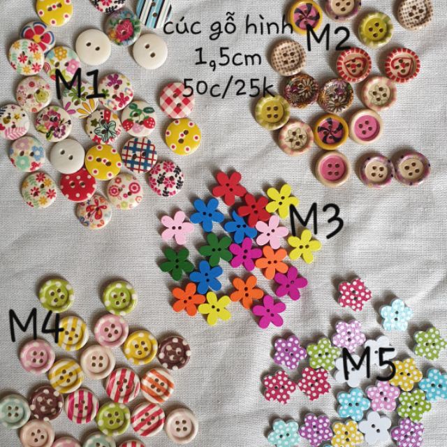 Cúc gỗ hình size 1,5cmKết áo váy, trang trí, handmade