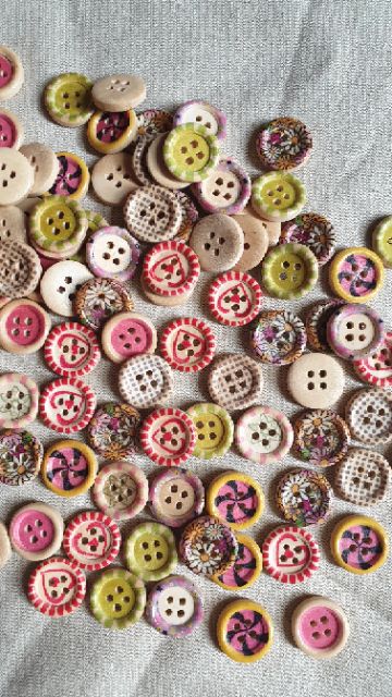 Sở thích & Sưu tầm > Dụng Cụ May Vá || Cúc gỗ hình xinh xắn size 1,5cmCòn hàng