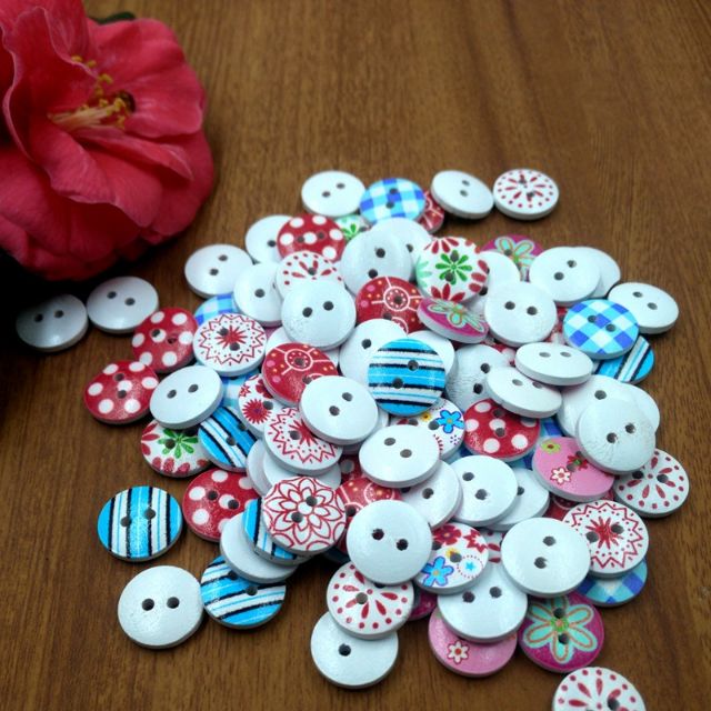 Sở thích & Sưu tầm > Dụng Cụ May Vá || Cúc Gỗ Nhiều Màu 15mmCòn hàng