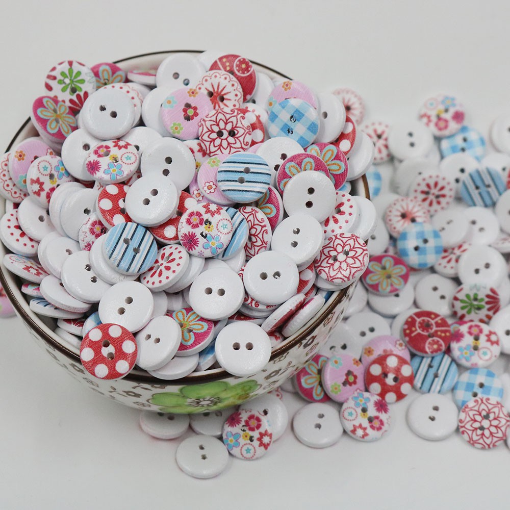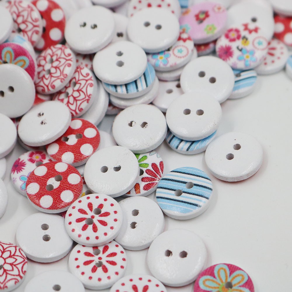 Sở thích & Sưu tầm > Dụng Cụ May Vá || Cúc gỗ nhiều màu họa tiết 15mmCòn hàng