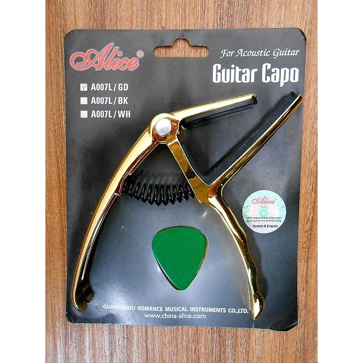 - Sản phẩm Capo ALICE là 1 nhãn hàng quá nổi tiếng, nếu không muốn nói 99% Guitar dùng tại Việt Nam là từ nhà máy của Alice.