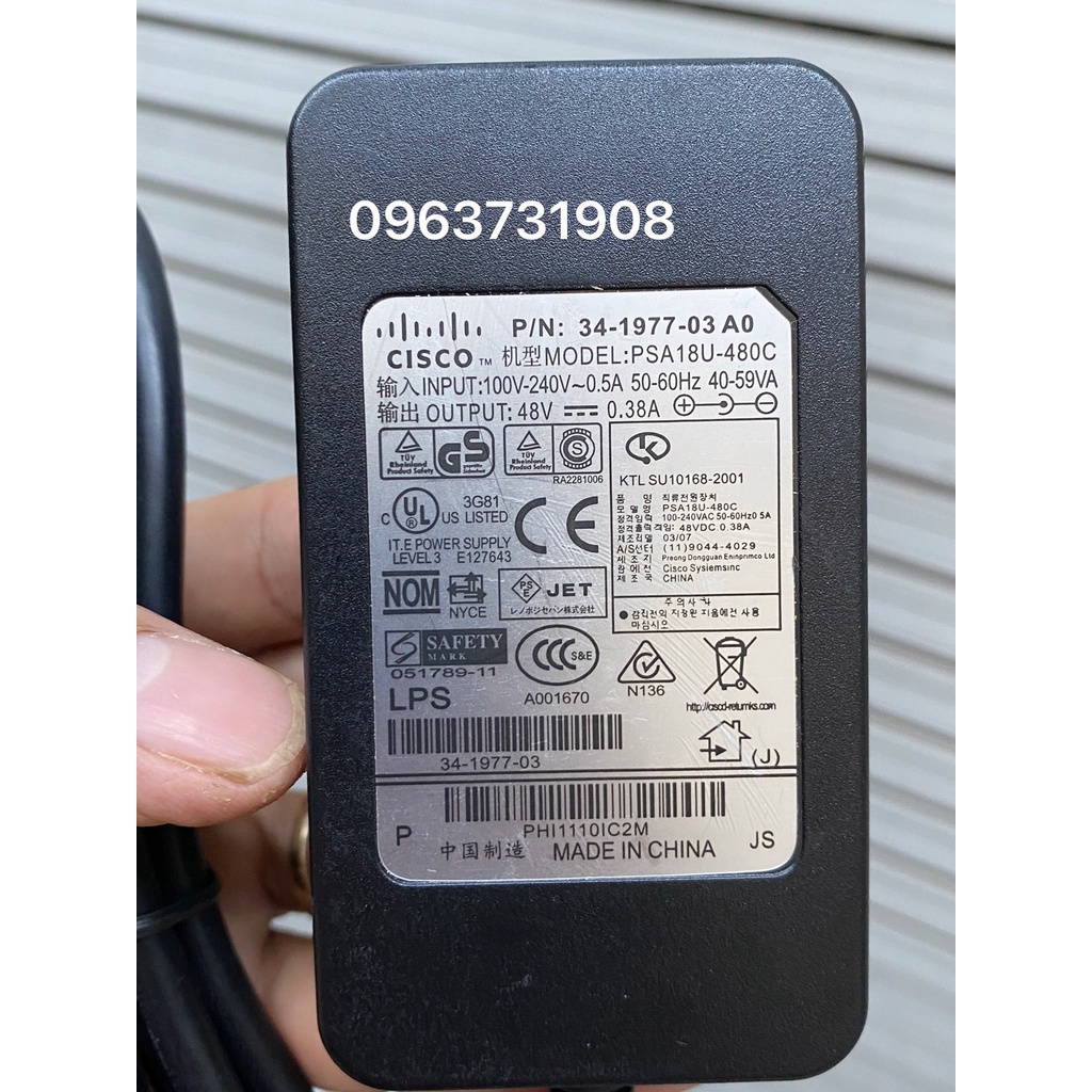 Thông số kĩ thuật trên bộ nguồn wifi cisco 48V-0.38A hàng xịn hãng