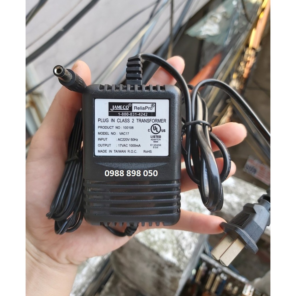 Thông số kỹ thuật Adaptor xoay chiều AC 17V 1000ma chính hãngHãng sản xuất: Jameco Reliapro