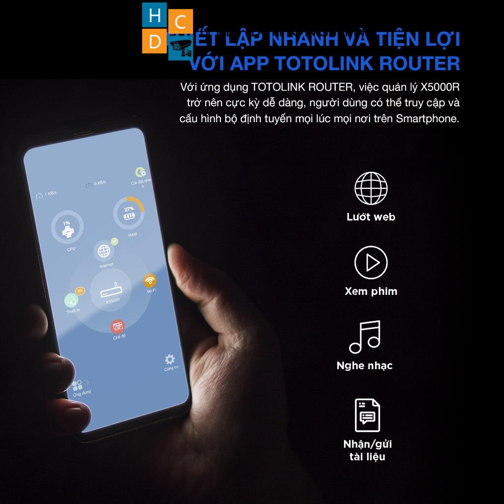Với ứng dụng TOTOLINK ROUTER, việc quản lý X5000R trở nên dễ dàng, người dùng có thể truy cập và cấu hình bộ định tuyến mọi lúc mọi nơi trên Smartphone.