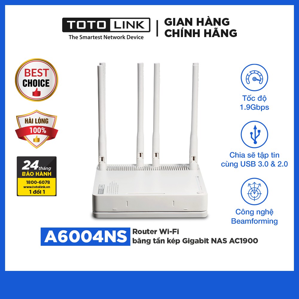 Cục phát wifi router wifi băng tần kép băng tần kép Gigabit NAS chuẩn AC 1900Mbps A6004NS TOTOLINK