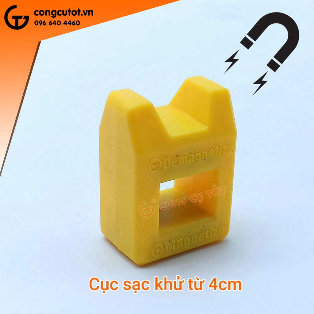 Cục sạc khử từ 4cm là dụng cụ chuyên dụng để sạc từ tính hoặc khử từ tính cho các dụng cụ như đầu tuốc nơ vít, đầu lục giác hay các đầu vặn vít có từ tính. Sản phẩm không cần điện để chạy nên rất an toàn khi sử dụng, kích thước nhỏ gọn dễ dàng mang theo trong túi đồ nghề.