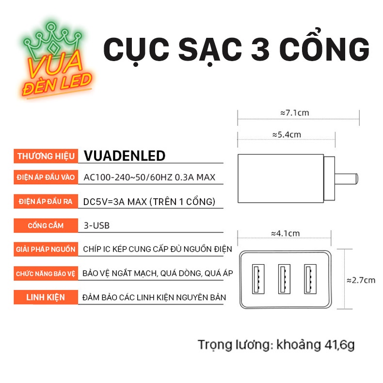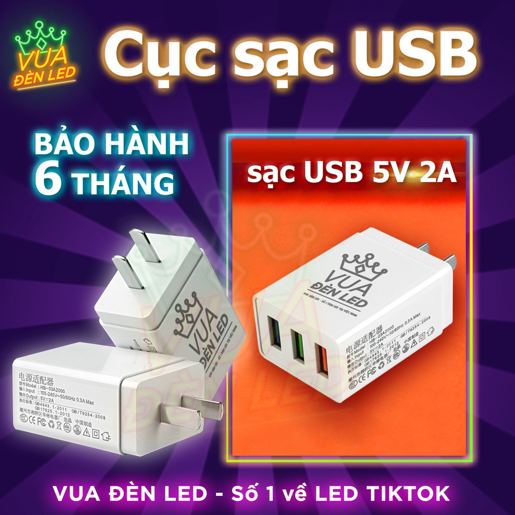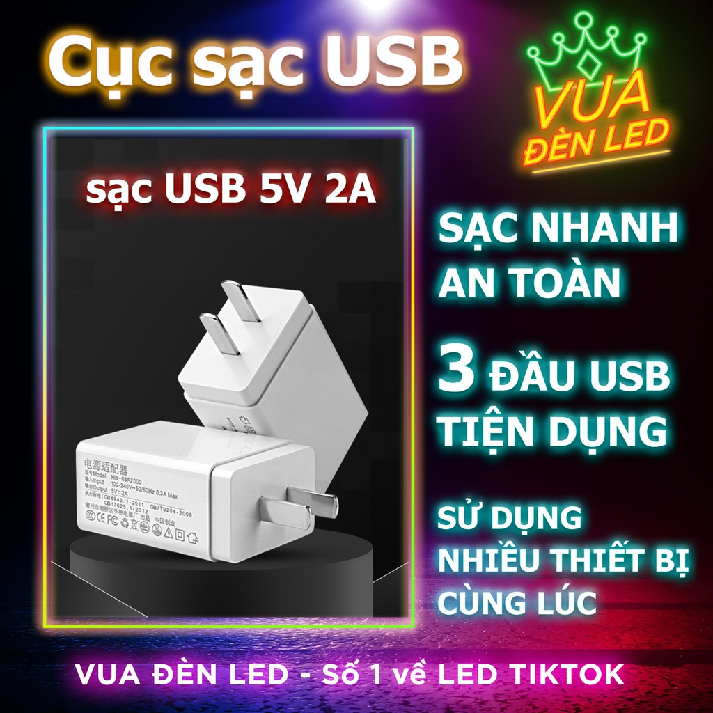 Điện Thoại & Phụ Kiện > Phụ kiện > Cáp, sạc & bộ chuyển đổi > Bộ sạc || Cục sạc USB 5V 2A sạc nhanh an toàn, củ sạc điện thoại VUA ĐÈN LED 3 đầu USB tiện dụng bảo hành 1 nămCòn hàng